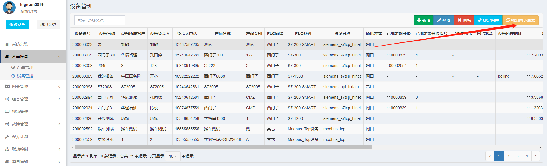 1. 是否強(qiáng)制同步點表,以思普云平臺采集數(shù)據(jù)為例,思普云平臺的設(shè)備管理處,選擇設(shè)備點擊【強(qiáng)制同步點表】。