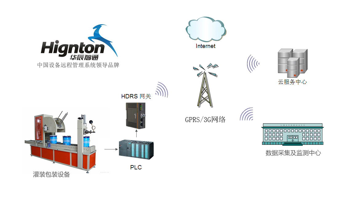 PLC遠(yuǎn)程監(jiān)控網(wǎng)關(guān)通過與灌裝包裝機(jī)械的核心控制器(如PLC等)連接,結(jié)合3G、WiFi、以太網(wǎng)及GPRS等通信方式并通過華辰智通專有的安全通道實(shí)現(xiàn)與服務(wù)器連接,實(shí)現(xiàn)設(shè)備的遠(yuǎn)程監(jiān)控及管理控制,并通過HDRS平臺強(qiáng)大的數(shù)據(jù)分析能力,分析來自控制器的各種數(shù)據(jù),結(jié)合客戶自己設(shè)定的預(yù)警值實(shí)現(xiàn)對設(shè)備的故障預(yù)警及診斷功能,完成遠(yuǎn)程的控制系統(tǒng)程序級的在線診斷、上下載和現(xiàn)場視頻查看、數(shù)據(jù)采集等多種功能,為設(shè)備提供分鐘級別的維護(hù)和診斷響應(yīng),并能夠依據(jù)客戶的要求提供運(yùn)行的預(yù)警保障。