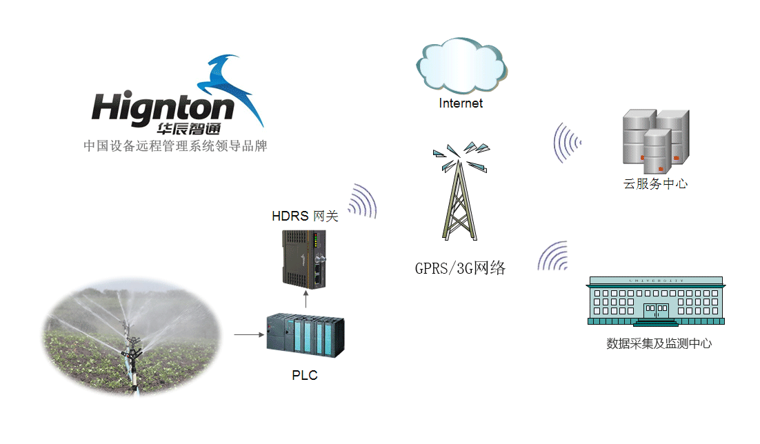 HDRS遠程安全通訊網(wǎng)關通過與灌溉設備的核心控制器(如PLC等)連接,結合3G、WiFi、以太網(wǎng)及GPRS等通信方式并通過華辰智通專有的安全通道實現(xiàn)與服務器連接,實現(xiàn)設備的遠程監(jiān)控及管理控制,并通過HDRS平臺強大的數(shù)據(jù)分析能力,分析來自控制器的各種數(shù)據(jù),結合客戶自己設定的預警值實現(xiàn)對農(nóng)作物生長狀況的預警與診斷功能。HDRS遠程安全通訊網(wǎng)關具有體積小巧安裝方式簡單(導軌安裝)等特點,整套系統(tǒng)無需改變灌溉設備的基本原有構造。